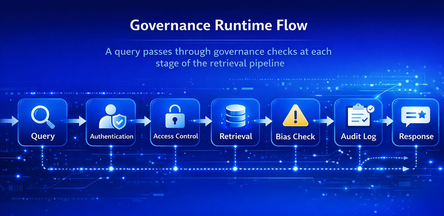 The architectural shift in 2026 is from governance as an afterthought to governance as a runtime component. Successful deployments treat RAG as a knowledge runtime—an orchestration layer managing retrieval, verification, reasoning, access control, and audit trails as integrated operations, similar to how Kubernetes manages workloads with health checks and security policies.