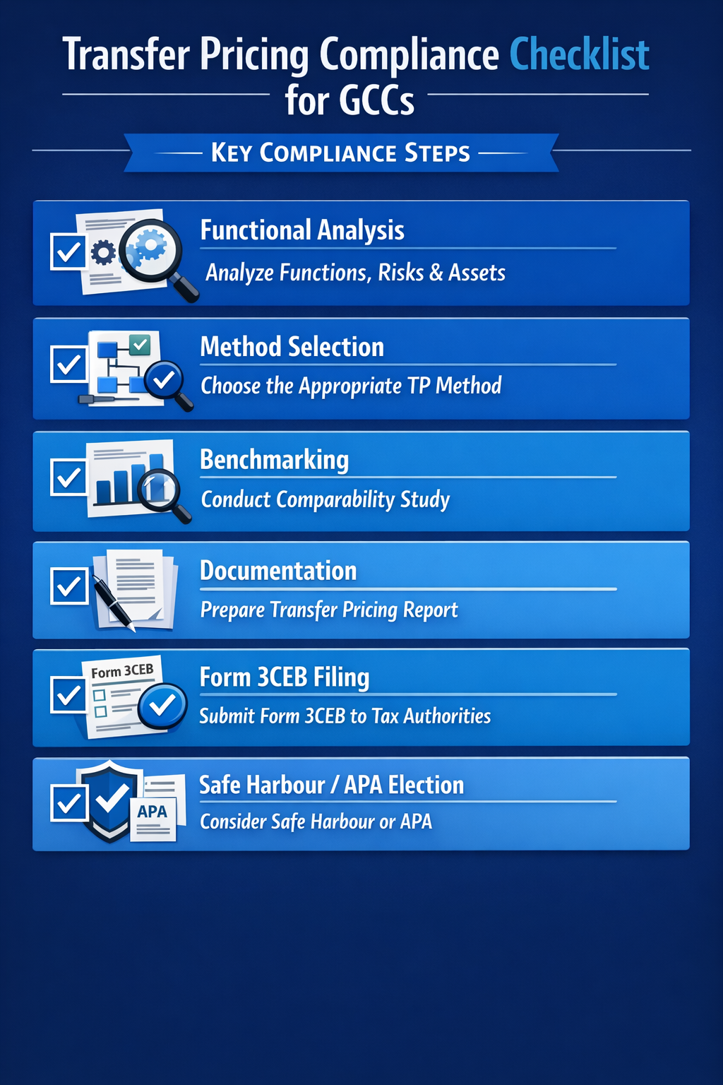 4. Ignoring the substance-over-form principle: Tax authorities look beyond contractual arrangements to assess actual economic substance. A GCC that contractually acts as a limited-risk entity but operationally makes strategic decisions and manages significant assets faces reclassification risk.